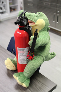 We weren't expecting any mischief, but when we found all the stuffed animals in the kitchen, fridge raiding was in progress. Luckily, one conscientious gator was supervising the scene and had a fire extinguisher at the ready. We didn't end up needing it, but he was prepared!